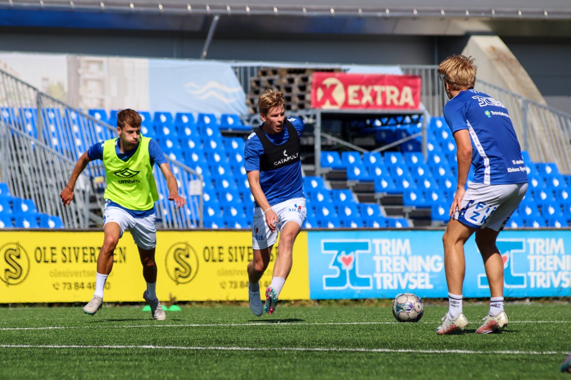 Vi trener som normalt mandag til fredag 10.30-12.00. Førstkommende lørdag 29.juli blir det treningskamp mot Kristiansund BK kl.15.00 på EXTRA Arena. En fin mulighet for å øve inn kampformen før det braker løs neste helg.