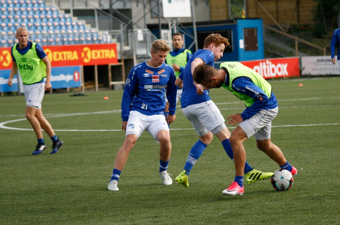 Det var både god stemning, temperatur, sinne og glede blant gutta i gjennom økta. Det viser det er godt konkurranseinstinkt blant spillerne! Se bildene under.