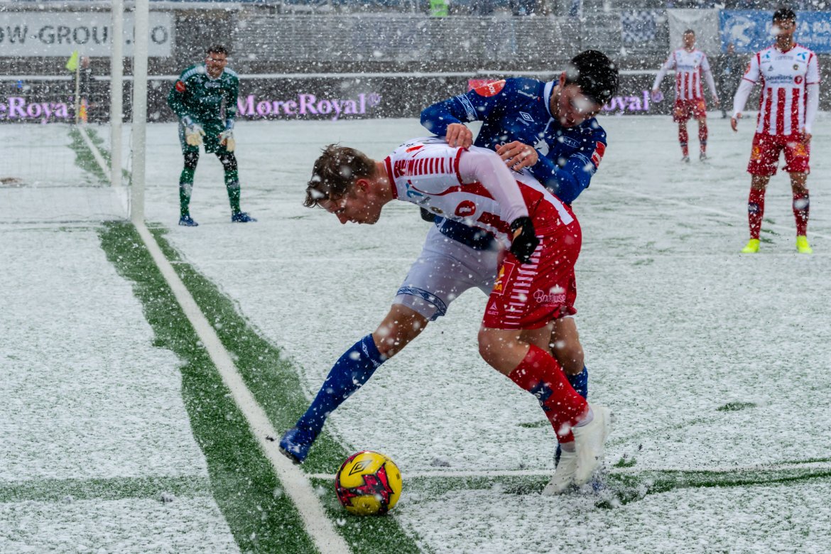 Det ble skikkelig vinterkrig i åpningskampen på Ranheim søndag, og det var Tromsø som tok med seg alle tre poengene. (Alle foto: Jørn Engberg) Bildegalleri