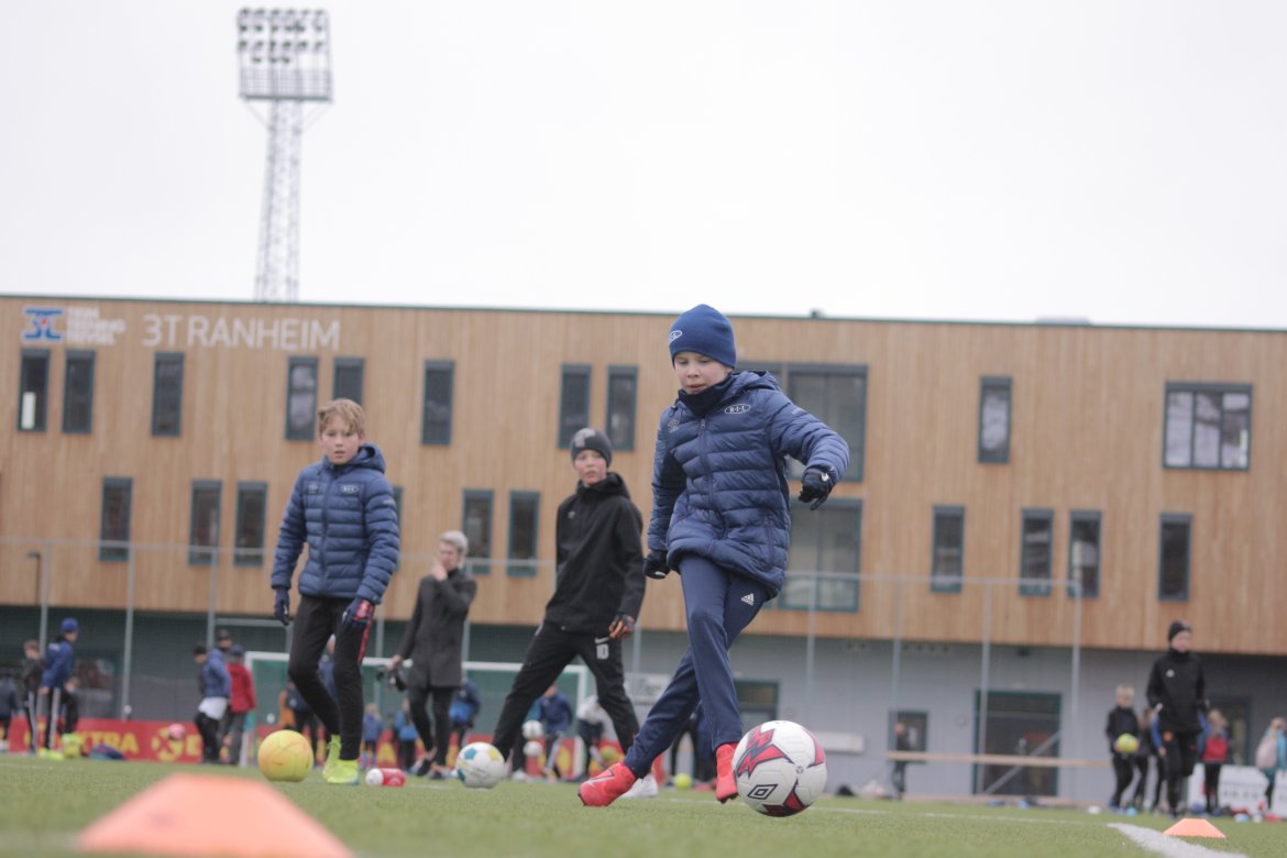 Selv om måneden ikke skal tilsi vinterjakke, lue og ull, var det ingenting å si på stemningen under Ranheim Fotballs egen festdag. Spillerne har vært gjennom sju ulike teknikkøvinger. Ferdighetsmerke til alle som har deltatt.